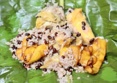 Se le denomina fiambre, porque se prepara para las personas, que deben desplazarse muy lejos de su casa. Se trata de una preparación que contiene gallina, yuca y plátano, arroz y hogao, que se envuelve en hoja de plátano para mantenerla fresca.