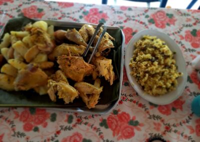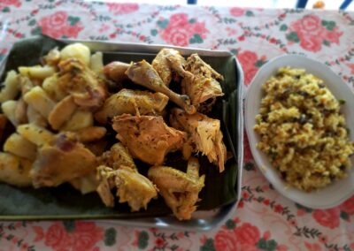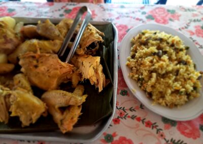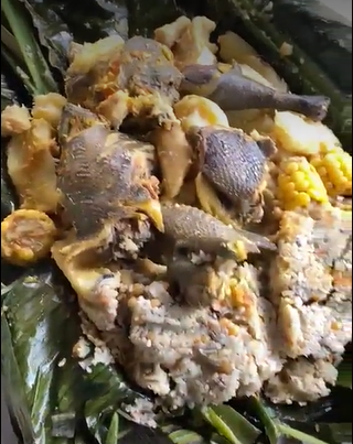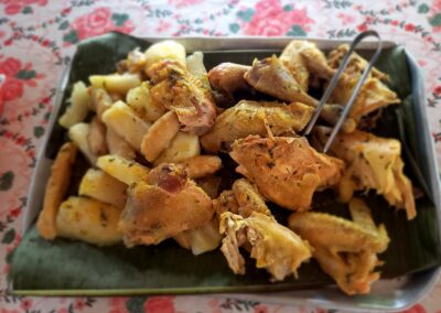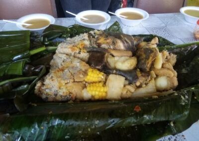 gallina criolla con yuca, papa criolla y mazorca