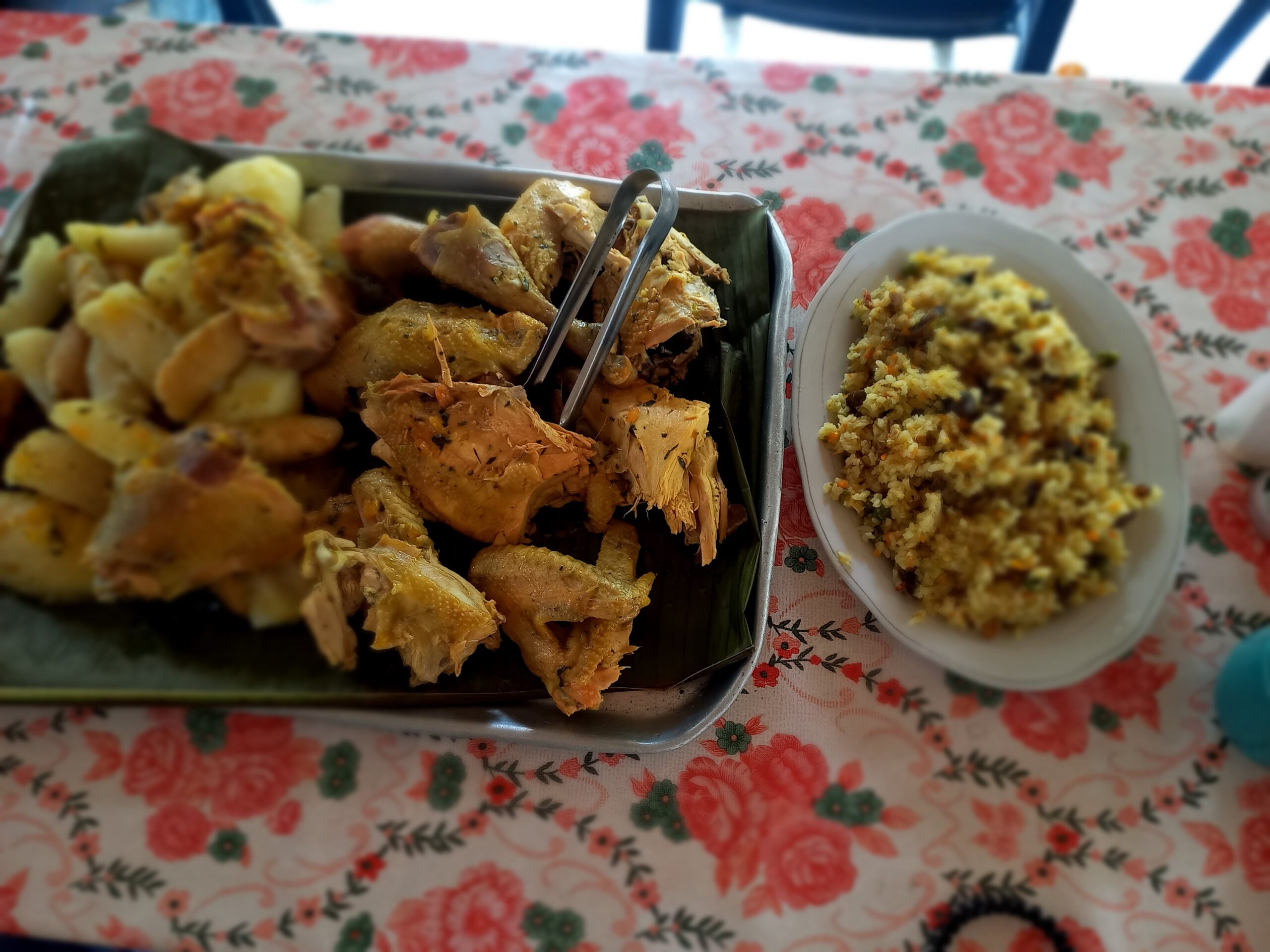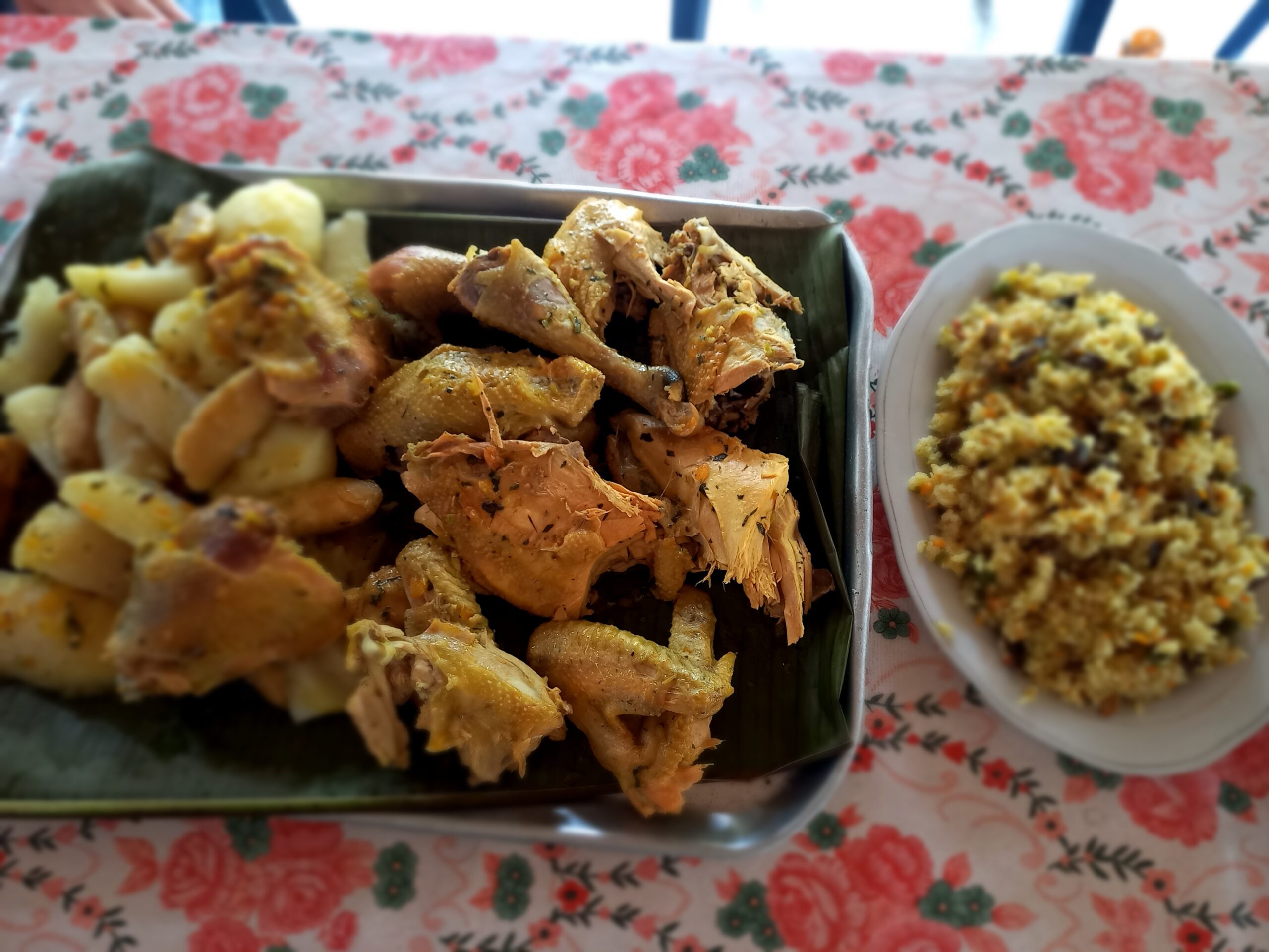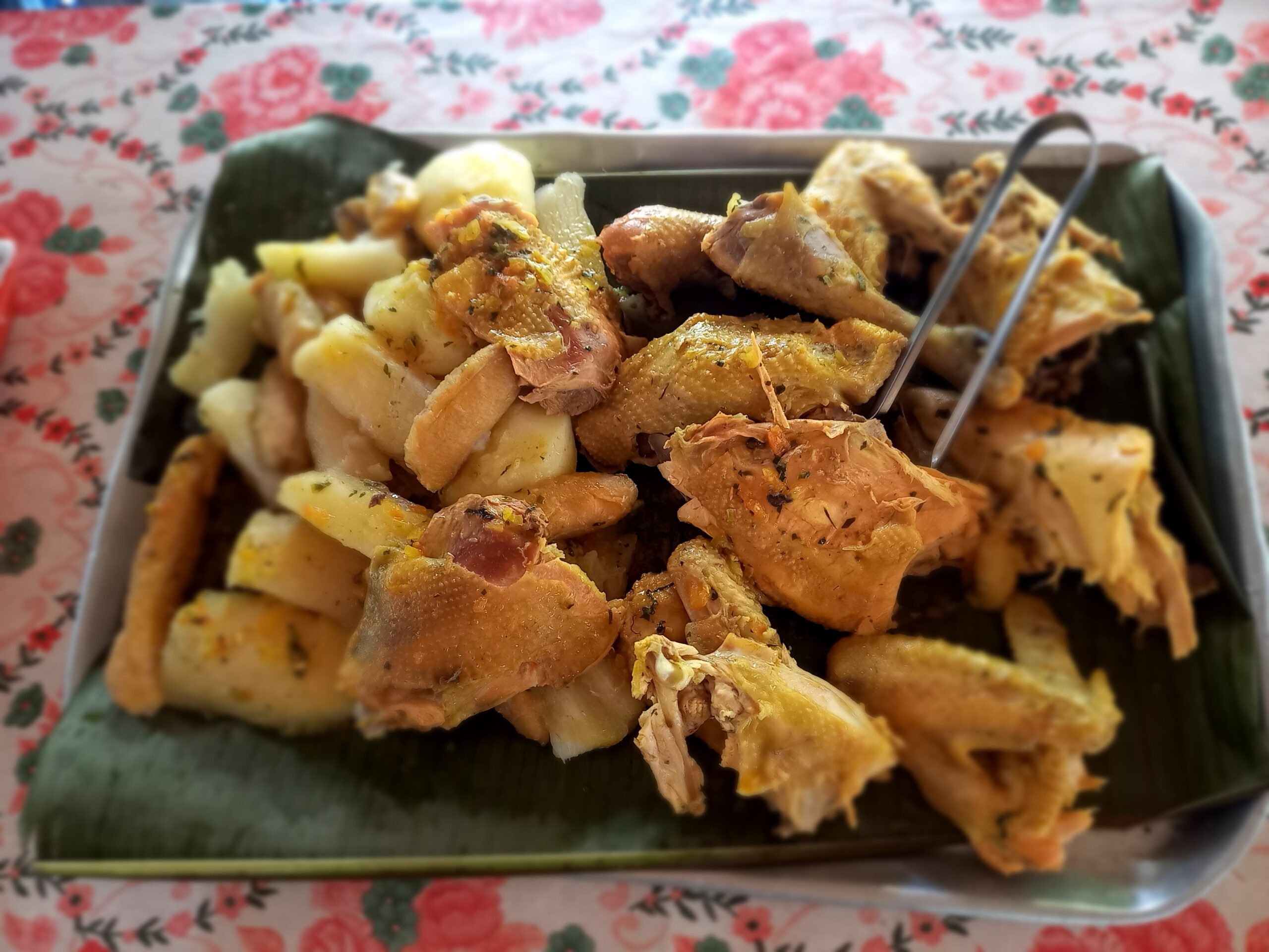 gallina criolla con yuca, papa criolla y mazorca
